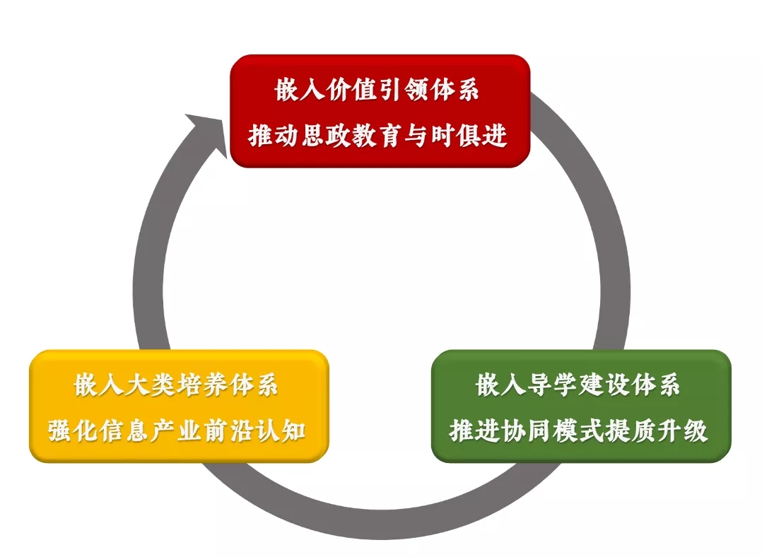 既注重與企業(yè)協(xié)同開展引導學生樹立遠大理想、立大志入主流的思政育人,也注重與企業(yè)開設信息產業(yè)前沿認知與創(chuàng)新創(chuàng)業(yè)能力實訓課程,開展大通識教育、專業(yè)通識教育,提升大類培養(yǎng)成效。