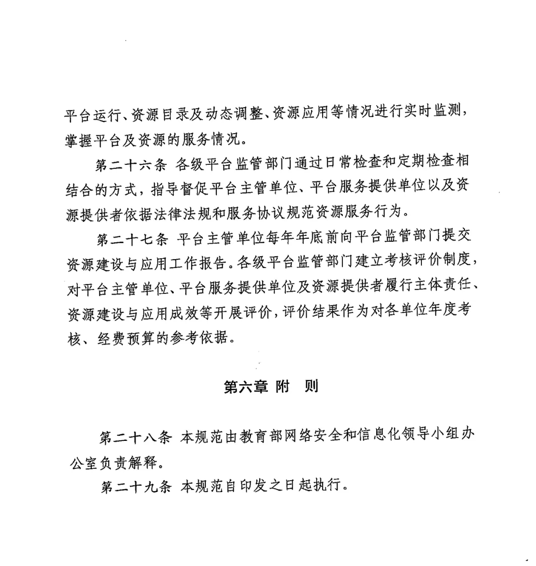 《規(guī)范》明確了國家智慧教育平臺數(shù)字教育資源入庫出庫的工作職責(zé)、入庫管理、出庫管理、監(jiān)督評價等二十九條相關(guān)規(guī)定,旨在豐富國家智慧教育平臺數(shù)字教育資源供給,提升資源質(zhì)量,實現(xiàn)對資源的動態(tài)更新調(diào)整,滿足師生和社會公眾對優(yōu)質(zhì)數(shù)字教育資源的需求。