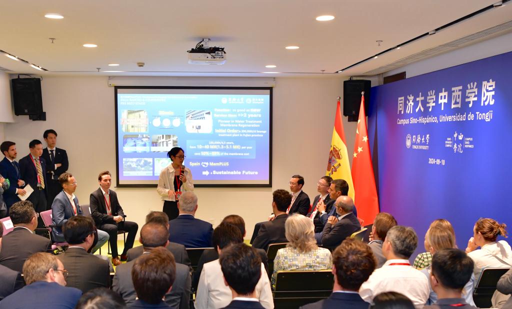 會上,西班牙馬德里理工大學(xué)駐同濟(jì)大學(xué)代表夏偉簡要介紹了同濟(jì)大學(xué)中西學(xué)院概況,馬德里理工大學(xué)訪問雇員巴勃羅·拉巴丹簡要介紹了西濟(jì)孵化器的設(shè)立初衷和扶持西班牙留學(xué)生創(chuàng)新創(chuàng)業(yè)情況。3名中國和西班牙青年創(chuàng)業(yè)者——同濟(jì)大學(xué)環(huán)境科學(xué)與工程學(xué)院碩士研究生白芷瑜、2024春季學(xué)期馬德里理工大學(xué)來同濟(jì)交流生圣地亞哥·羅德里戈、受西濟(jì)孵化器吸引而來的創(chuàng)業(yè)者西達(dá)塔·利茲卡諾阿比納,分別介紹了各自的創(chuàng)業(yè)項目。
