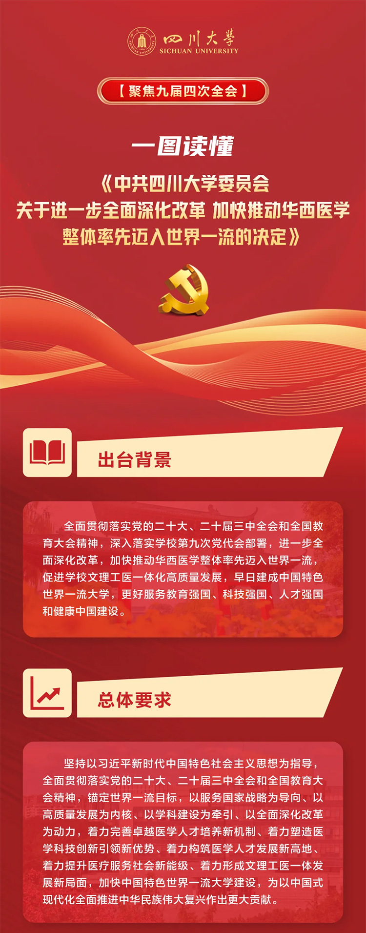 會(huì)議號(hào)召,全校各級(jí)黨組織和廣大干部師生要更加緊密地團(tuán)結(jié)在以習(xí)近平同志為核心的黨中央周圍,踔厲奮發(fā)、改革創(chuàng)新,加快推動(dòng)華西醫(yī)學(xué)整體率先邁入世界一流,奮力譜寫中國(guó)特色世界一流大學(xué)建設(shè)新篇章,為強(qiáng)國(guó)建設(shè)、民族復(fù)興偉業(yè)作出新的更大貢獻(xiàn)!