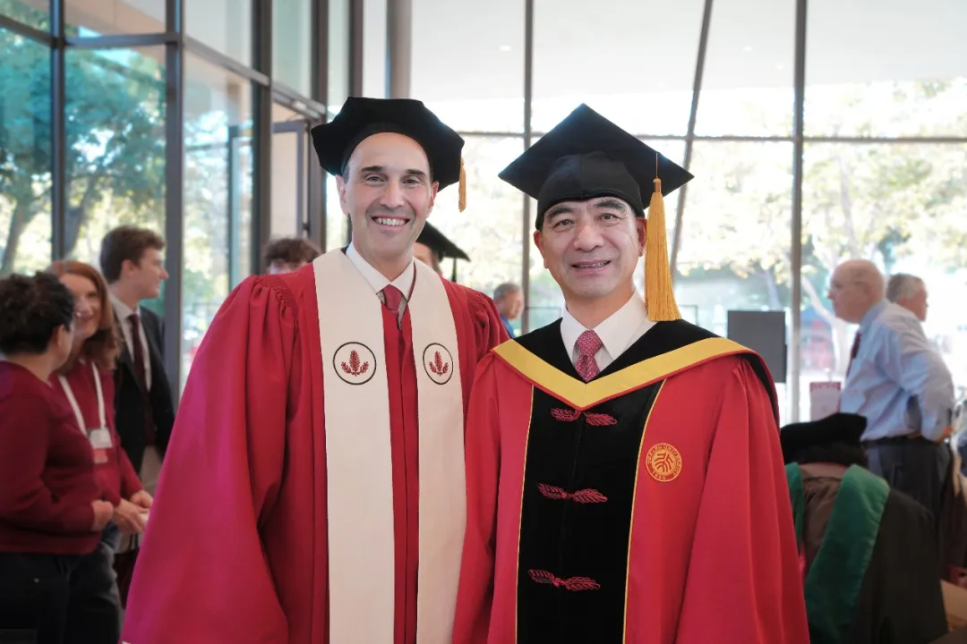 9月27日,斯坦福大學新任校長就職典禮在斯坦福大學弗羅斯特圓形劇場(Frost Amphitheater)舉行,來自世界各地高校、科研機構(gòu)的校長及代表、斯坦福大學師生代表等共同受邀到場觀禮。斯坦福大學第9任校長格哈德·卡斯帕(Gerhard Casper)、第10任校長約翰·亨尼斯(John L. Hennessy)、第11任校長馬克·特榭-勒溫(Marc Tessier-Lavigne)、第12任校長理查德·薩勒(Richard Saller)等出席儀式。龔旗煌作為合作高校校長代表,與耶魯大學前校長蘇必德(Peter Salovey)等共同出席就職典禮。代表團成員共同參加了儀式。