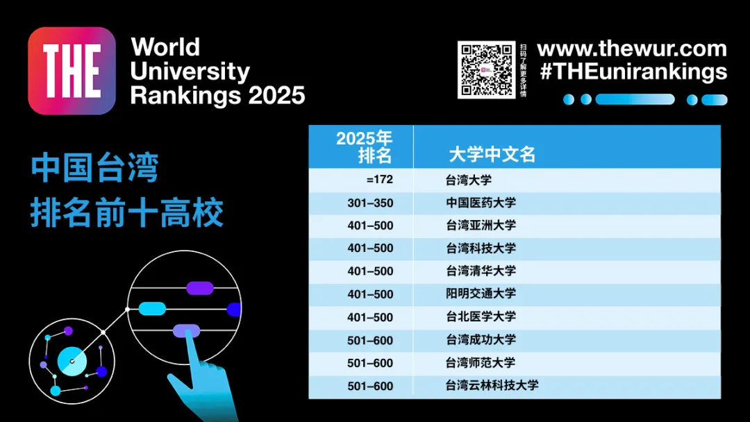 2025年泰晤士高等教育世界大學排名10月9日正式揭曉。
