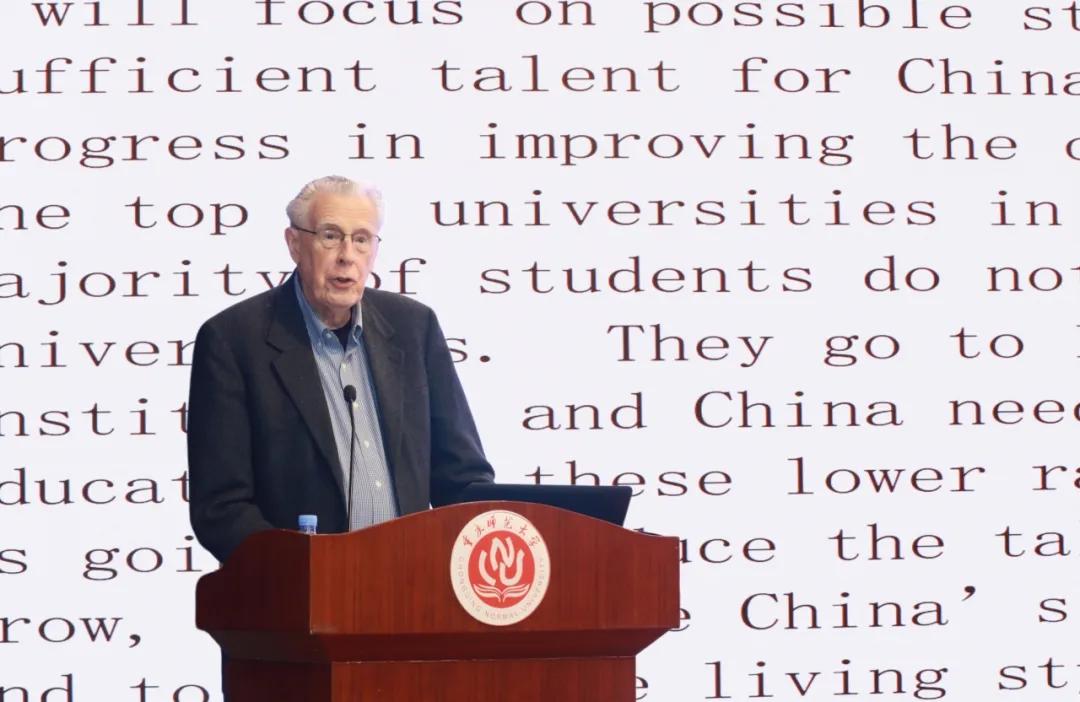 約翰·霍普克羅夫特教授以《為什么要提升大學教育質(zhì)量》為題作主旨報告,深入闡釋了提升大學教育對拔尖創(chuàng)新人才培養(yǎng)的重要性。他談到,“101計劃”是拔尖創(chuàng)新人才培養(yǎng)的一項筑基性工程,由教育部統(tǒng)籌,匯聚頂尖高校、頂尖師資、頂尖出版單位等各方資源,以課程、教材、教師和實踐項目等基礎(chǔ)要素建設,來帶動教育教學系統(tǒng)改革。