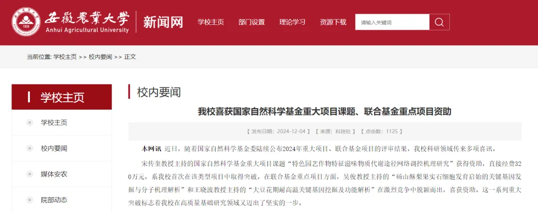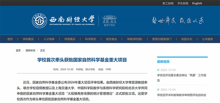 日前,國家自然科學(xué)基金委員會公布了2024年國家自然科學(xué)基金重大項(xiàng)目立項(xiàng)結(jié)果。近日,南開大學(xué)、浙江工業(yè)大學(xué)、西南財(cái)經(jīng)大學(xué)、安徽農(nóng)業(yè)大學(xué)、湖南農(nóng)業(yè)大學(xué)、云南大學(xué)相繼官宣獲批國家自然科學(xué)基金重大項(xiàng)目立項(xiàng)。