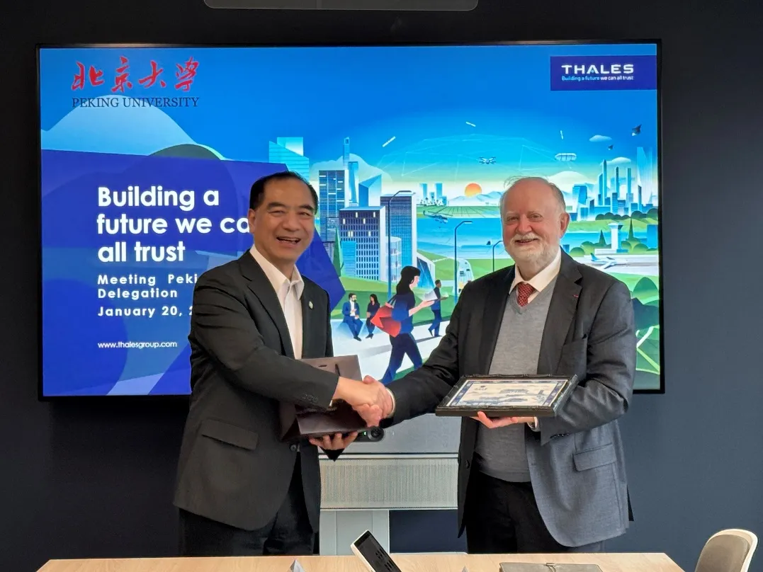2025年1月17日至22日,北京大學(xué)校長、中國科學(xué)院院士龔旗煌率團(tuán)訪問瑞士和法國,出席國際研究型大學(xué)聯(lián)盟(IARU)校長年會(huì)和世界經(jīng)濟(jì)論壇全球大學(xué)領(lǐng)導(dǎo)者論壇(WEF-GULF),訪問法國泰雷茲集團(tuán)(Thales Group)。訪問期間,龔旗煌與牛津大學(xué)校長艾琳·特雷西(Irene Tracey)、蘇黎世聯(lián)邦理工學(xué)院校長喬埃爾·梅索特(Jo?l Mesot)、蘇黎世大學(xué)校長邁克爾·謝普曼(Michael Schaepman)、東京大學(xué)校長藤井輝夫(Teruo Fujii)等世界著名大學(xué)校長進(jìn)行深入交流。