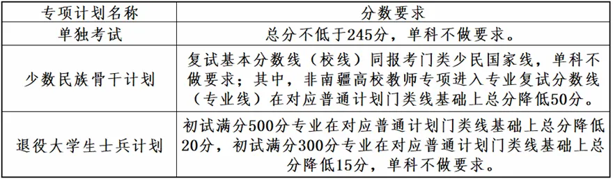 1.各招生學(xué)院(部)可根據(jù)學(xué)科特點、招生計劃數(shù)量等確定本單位各學(xué)科專業(yè)考生進(jìn)入復(fù)試的初試成績要求(專業(yè)分?jǐn)?shù)線)。
