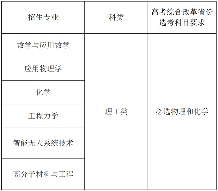 我校強基計劃招生專業(yè)及高考綜合改革省份選考科目要求如下: