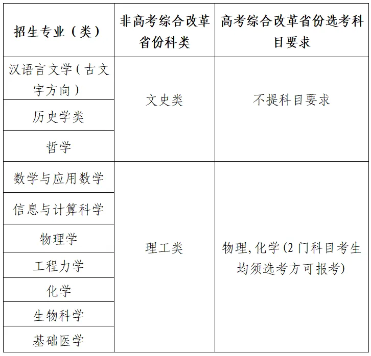 為全面貫徹全國教育大會精神,深入落實《國務院關于深化考試招生制度改革的實施意見》(國發(fā)〔2014〕35號)、教育部《關于在部分高校開展基礎學科招生改革試點工作的意見》(教學〔2020〕1號)等文件精神,服務國家重大戰(zhàn)略需求,加強基礎學科拔尖創(chuàng)新人才選拔培養(yǎng),四川大學2025年繼續(xù)開展基礎學科招生改革試點(以下簡稱強基計劃),選拔一批有志向、有興趣、有天賦的青年學生進行專門培養(yǎng),為國家基礎學科和重大戰(zhàn)略領域輸送后備人才。