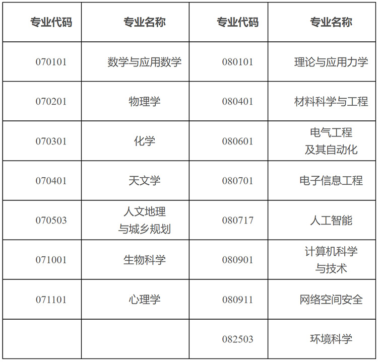 2025年國(guó)科大共15個(gè)專(zhuān)業(yè)招收本科生,具體專(zhuān)業(yè)如下: