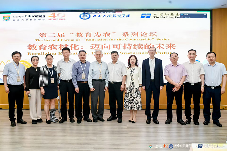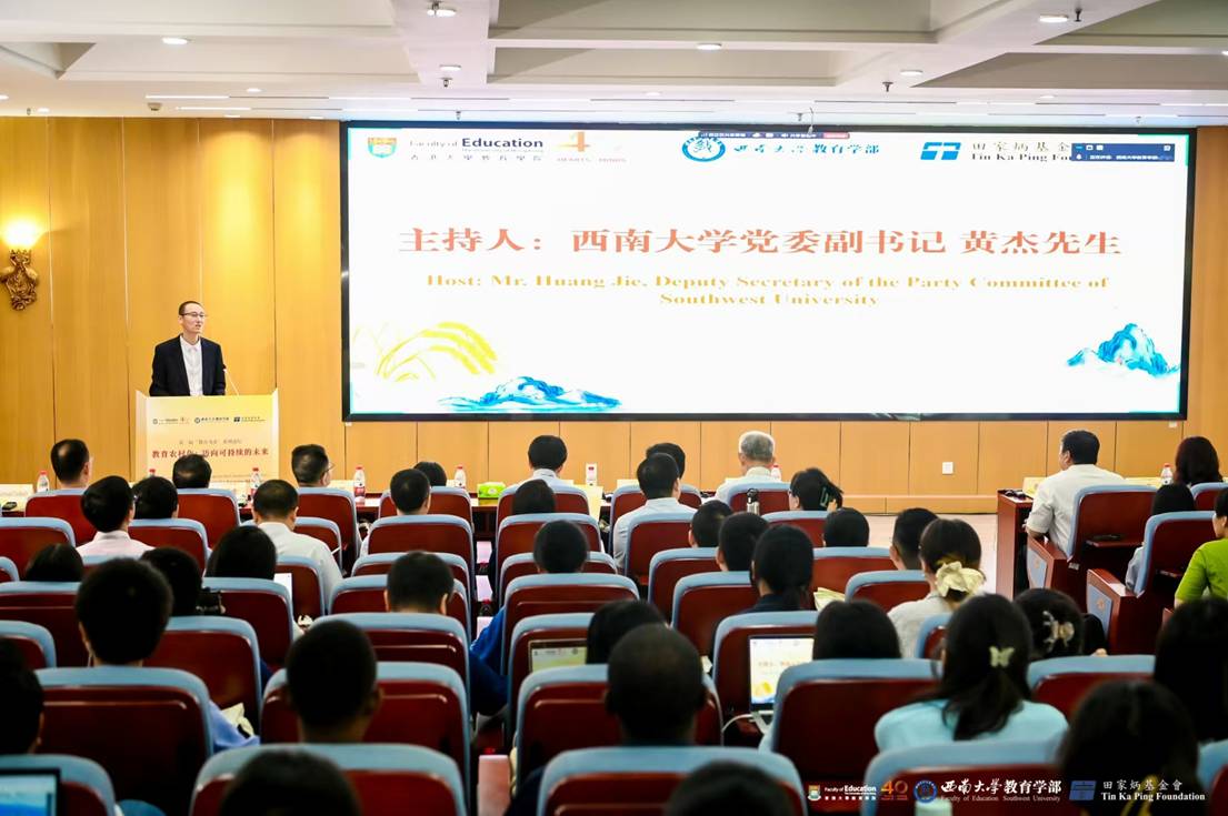 6月14日至6月15日,由西南大學(xué)教育學(xué)部與香港大學(xué)教育學(xué)院聯(lián)合舉辦、田家炳基金會(huì)資助的第二屆“教育為農(nóng)”系列論壇在西南大學(xué)成功舉辦。西南大學(xué)黨委書(shū)記張衛(wèi)國(guó)、田家炳基金會(huì)前任主席田慶先、香港大學(xué)教育學(xué)院院長(zhǎng)楊銳、重慶市委統(tǒng)戰(zhàn)部副部長(zhǎng)李康、重慶市政協(xié)港澳臺(tái)僑和外事委員會(huì)專職副主任何方、田家炳基金會(huì)副總干事蕭開(kāi)廷出席論壇開(kāi)幕式,開(kāi)幕式由西南大學(xué)黨委副書(shū)記黃杰主持。來(lái)自澳大利亞、加拿大、日本、中國(guó)香港和內(nèi)地高校、研究機(jī)構(gòu)的專家學(xué)者,以及全國(guó)一線教育工作者共200余人線下參會(huì),另有1.2萬(wàn)人次在線觀看。