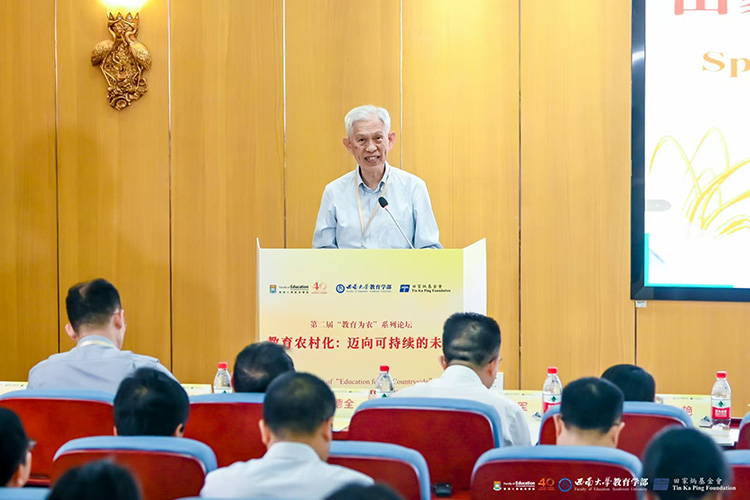 西南大學(xué)黨委書(shū)記張衛(wèi)國(guó)代表學(xué)校致辭。張衛(wèi)國(guó)指出,西南大學(xué)長(zhǎng)期致力于西部農(nóng)村教育發(fā)展,晏陽(yáng)初等先賢曾在西南大學(xué)前身之一的中國(guó)鄉(xiāng)村建設(shè)學(xué)院探索鄉(xiāng)村教育發(fā)展道路,學(xué)?,F(xiàn)已成為國(guó)內(nèi)農(nóng)村教育重要研究基地。辦學(xué)119年來(lái),學(xué)校以“教育興國(guó)”為使命,眾多師生投身鄉(xiāng)村建設(shè),為鄉(xiāng)村教育振興做出了重要貢獻(xiàn)。展望未來(lái),學(xué)校將致力于推動(dòng)農(nóng)村教育模式創(chuàng)新,在教育強(qiáng)國(guó)建設(shè)中作出應(yīng)有貢獻(xiàn)。