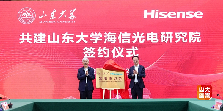 12月12日,山東大學(xué)海信光電研究院揭牌儀式在青島校區(qū)舉行。校長(zhǎng)李術(shù)才,海信集團(tuán)黨委書記、董事長(zhǎng)賈少謙出席儀式并致辭。副校長(zhǎng)、青島校區(qū)校長(zhǎng)王美琴,海信集團(tuán)副總裁、海信視像科技總裁李煒參加活動(dòng)。