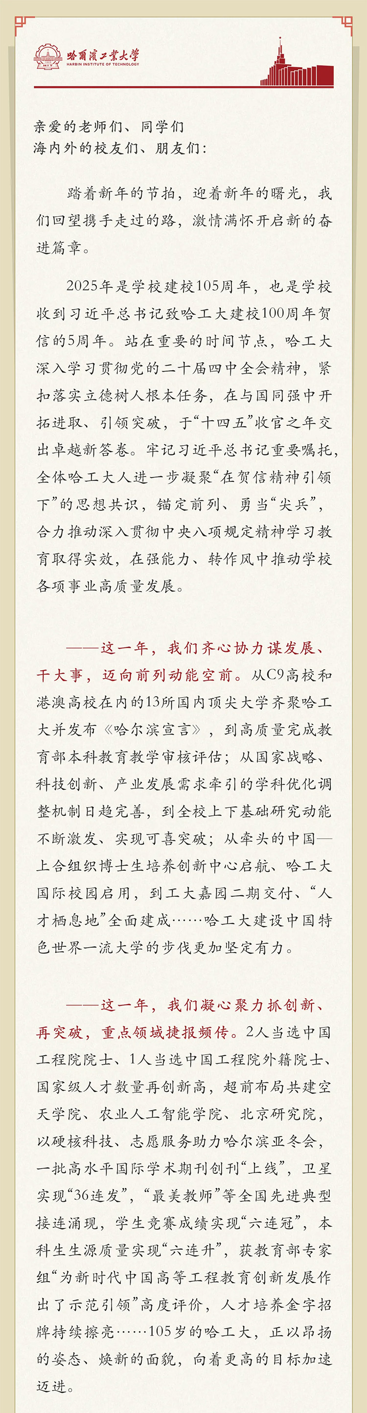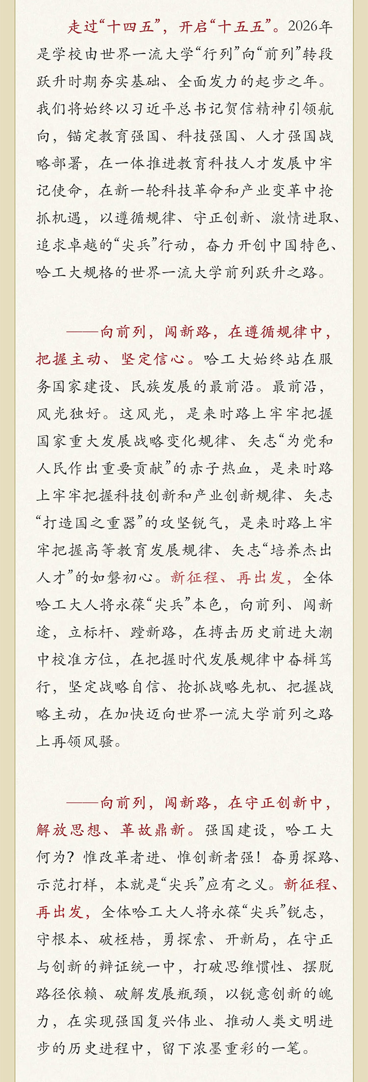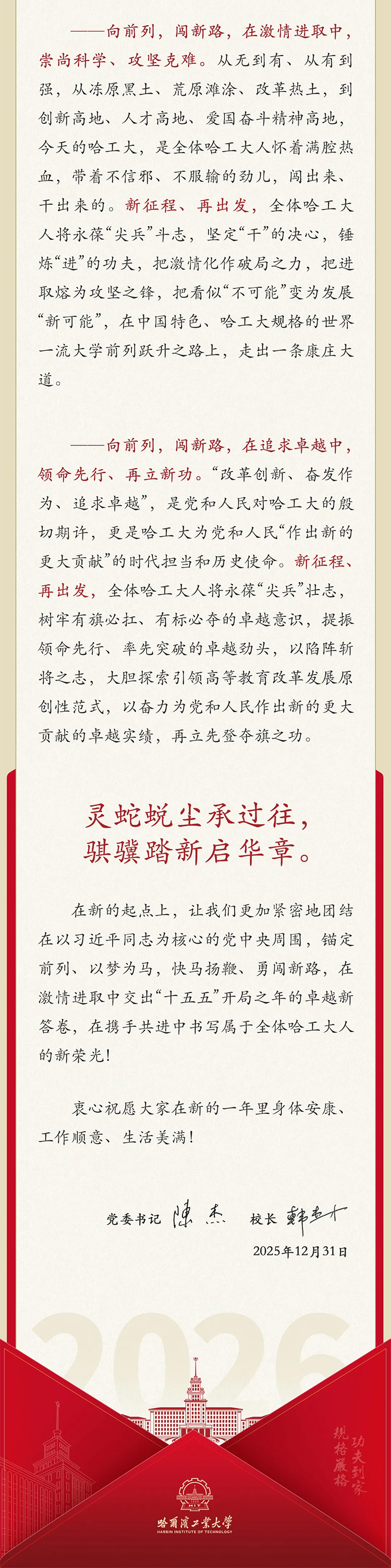 哈爾濱工業(yè)大學2026年新年獻詞:向前列 闖新路