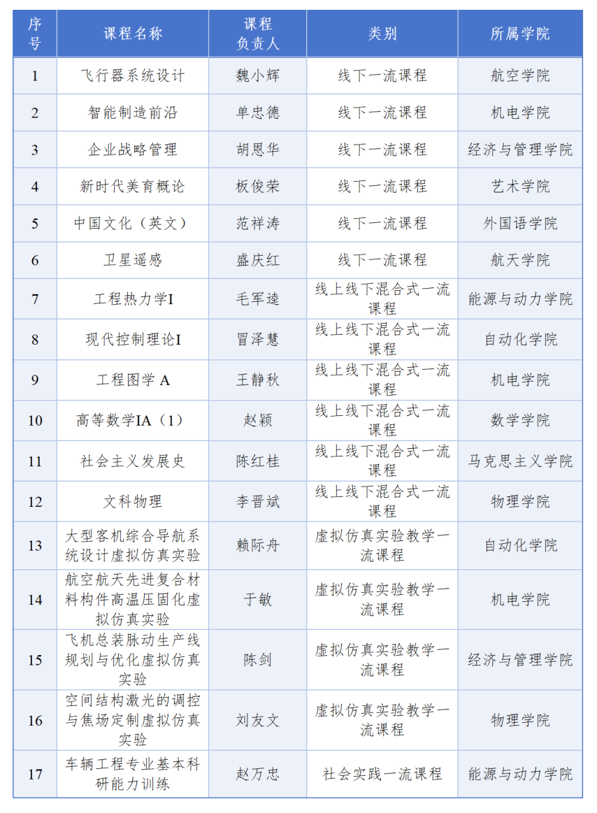 南京航空航天大學(xué)17門課程入選第三批國家級一流本科課程