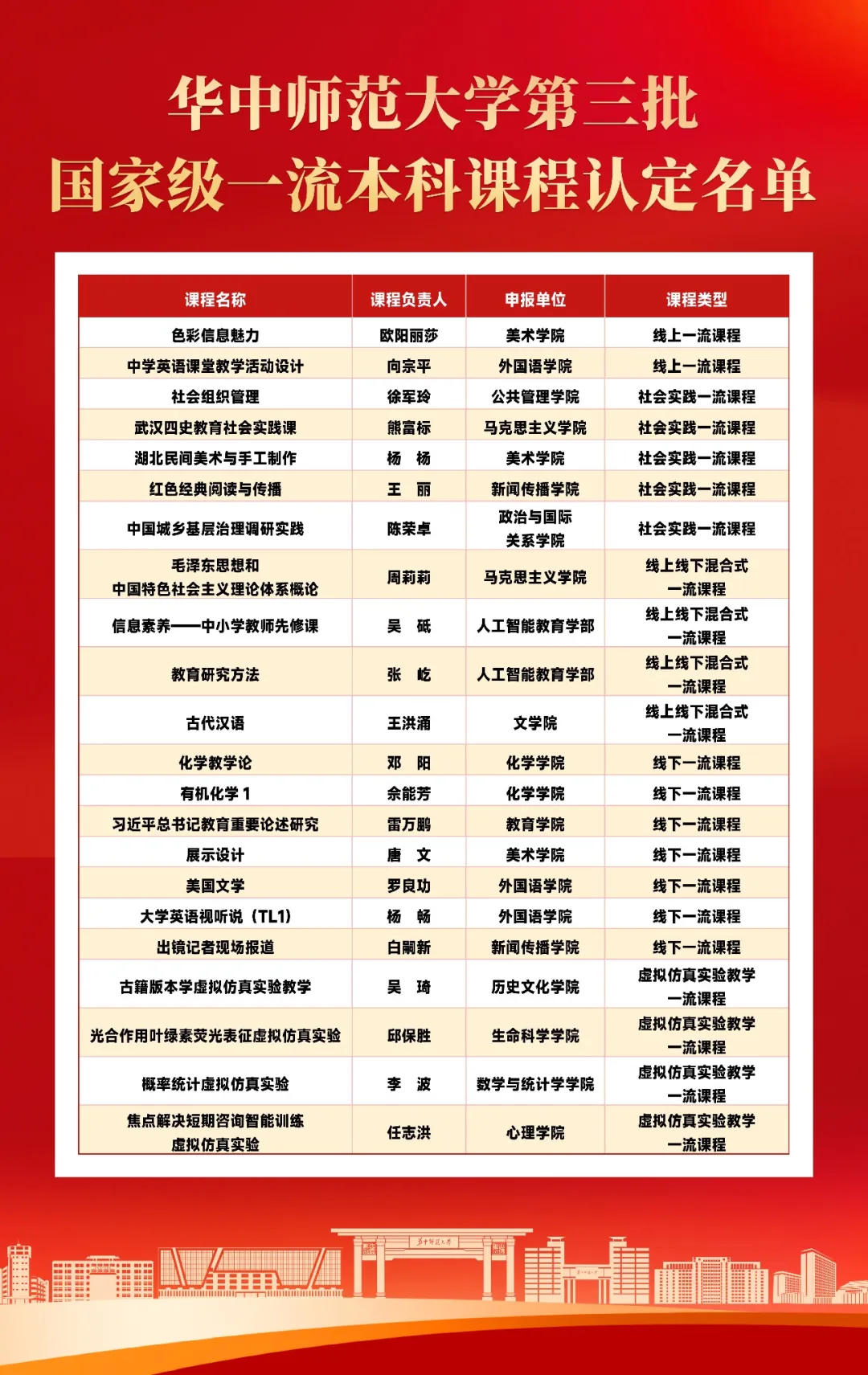 華中師范大學(xué)22門課程入選第三批國家級一流本科課程