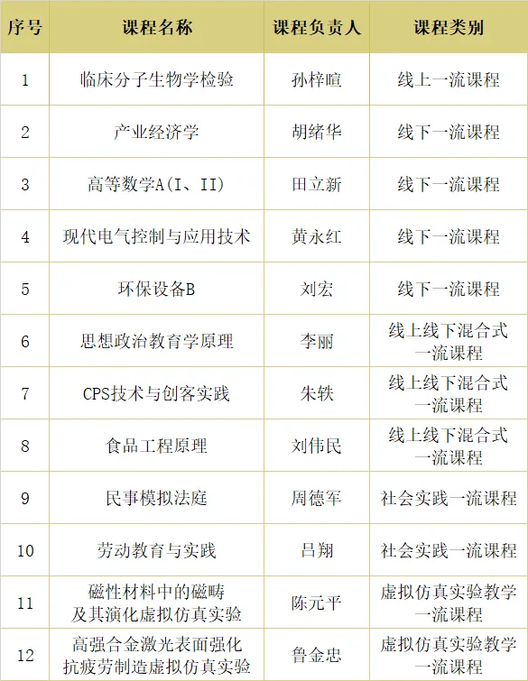 江蘇大學(xué)此次被認(rèn)定的12門國家級一流本科課程