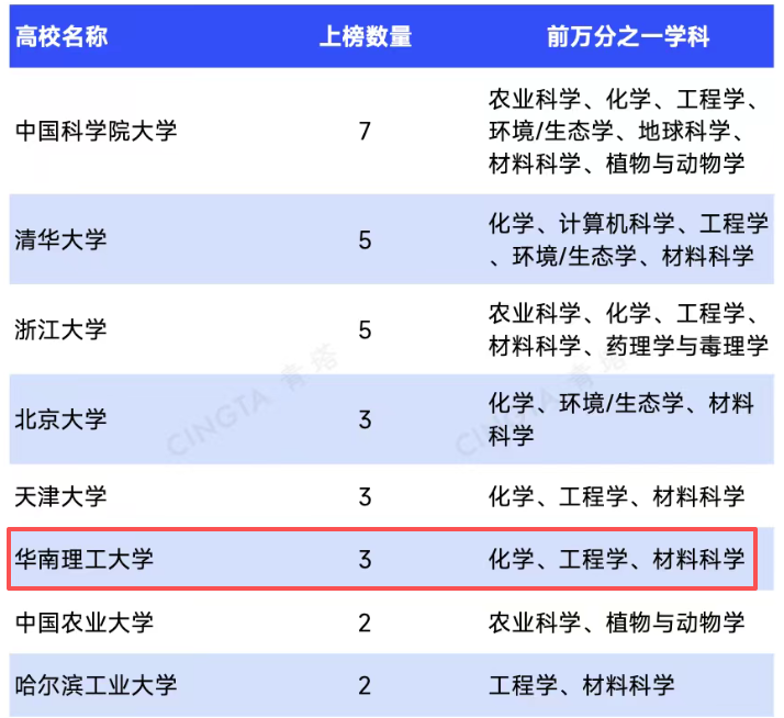 據(jù)第三方統(tǒng)計(jì),華南理工大學(xué)3個(gè)學(xué)科入選ESI萬(wàn)分之一,穩(wěn)居內(nèi)地高校并列第四位。