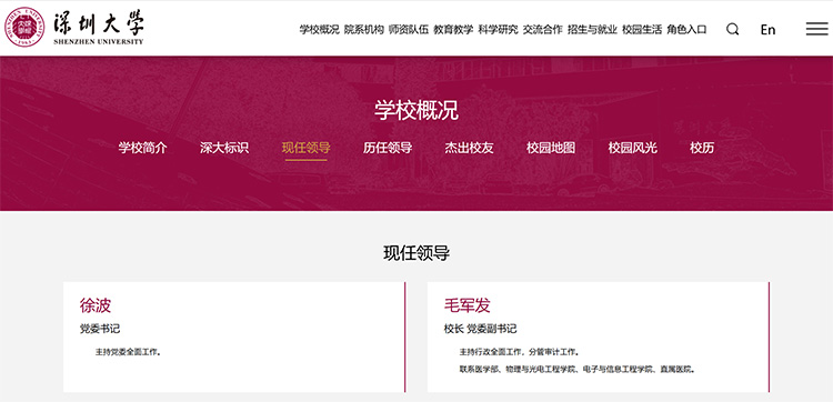 日前,深圳大學(xué)官網(wǎng)“現(xiàn)任領(lǐng)導(dǎo)”欄目更新顯示,徐波已任深圳大學(xué)黨委書記,主持黨委全面工作。