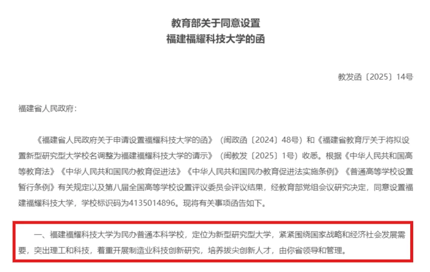 在一系列政策支持下,近年來(lái),理工農(nóng)醫(yī)類高校如雨后春筍,成為新建高校的主體,尤其是高水平理工農(nóng)醫(yī)類院校。如,本次批準(zhǔn)設(shè)立的福建福耀科技大學(xué),教育部的批復(fù)《函件》中明確其定位是新型研究型大學(xué)。要求其緊緊圍繞國(guó)家戰(zhàn)略和經(jīng)濟(jì)社會(huì)發(fā)展需要,突出理工和科技。此外,教育部于2024年5月批準(zhǔn)設(shè)立的深圳理工大學(xué)(理工類)和康復(fù)大學(xué)(醫(yī)藥類)均定位為高水平新型研究型大學(xué)。