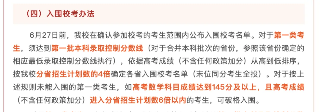 中國(guó)農(nóng)業(yè)大學(xué)未能入圍的第一類考生,如高考數(shù)學(xué)科目成績(jī)達(dá)到145分及以上,且高考成績(jī)(不含任何政策加分)進(jìn)入分省招生計(jì)劃數(shù)6倍以內(nèi)的考生,可破格入圍。