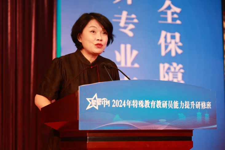 教育部基礎(chǔ)教育司副司長李海勝指出,此次特殊教育教研員能力提升研修班,是近年來首次舉辦的國家級(jí)特殊教育教研員隊(duì)伍專項(xiàng)培訓(xùn),這既是貫徹落實(shí)黨的二十大關(guān)于“強(qiáng)化特殊教育普惠發(fā)展”的實(shí)際行動(dòng),也是落實(shí)黨的二十屆三中全會(huì)“健全特殊教育保障機(jī)制”的具體體現(xiàn),對(duì)建設(shè)教育強(qiáng)國,提升民生保障力,構(gòu)建公平優(yōu)質(zhì)基礎(chǔ)教育體系具有重要意義。辦好特殊教育,是黨和政府堅(jiān)持以人民為中心、弘揚(yáng)人道主義精神和保障基本人權(quán)的重要舉措,是推進(jìn)教育高質(zhì)量發(fā)展、加快建設(shè)教育強(qiáng)國的應(yīng)有之義,也是推進(jìn)中國式現(xiàn)代化、實(shí)現(xiàn)共同富裕的內(nèi)在要求。他強(qiáng)調(diào),加強(qiáng)特殊教育教研工作,是提升特殊教育質(zhì)量的關(guān)鍵所在。各級(jí)教育部門要高度重視特殊教育教研工作,健全教研體制機(jī)制,加強(qiáng)教研隊(duì)伍建設(shè),提升教學(xué)研究水平和教學(xué)指導(dǎo)能力,為特殊教育高質(zhì)量發(fā)展提供有力支撐。