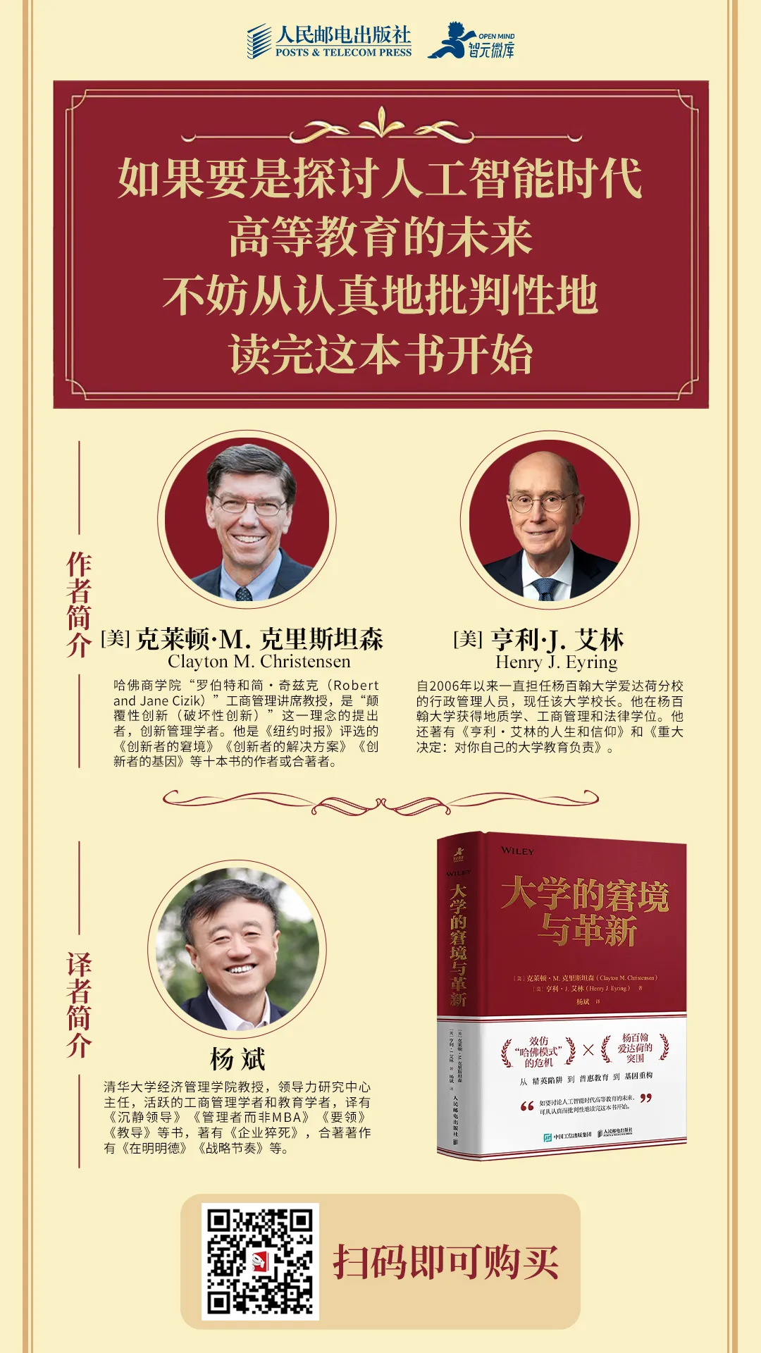 另一位作者艾林其實是本書這個研究項目的最初發(fā)起者,愛反思的他在楊百翰大學愛達荷分校任職時,發(fā)現(xiàn)了效仿哈佛模式的眾多大學所陷入的困境,提出大多數(shù)的傳統(tǒng)大學如果不改基因,則無出路的斷言。是他主動邀請試圖解釋高等教育中的破壞性創(chuàng)新謎題(而受挫)的克里斯坦森加入到這個研究項目,并最終形成了新的思路,總結了新的模式,一起寫就了本書。本書中文版出版時,艾林已經(jīng)成為了楊百翰大學愛達荷分校的校長,并專門寫了致中國讀者的話。