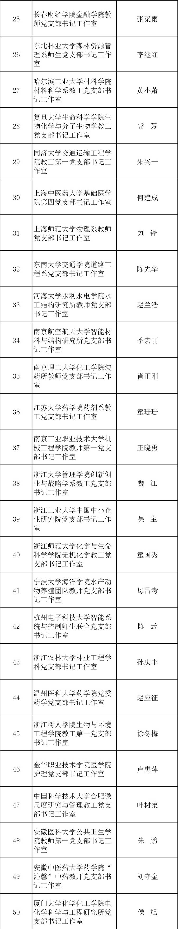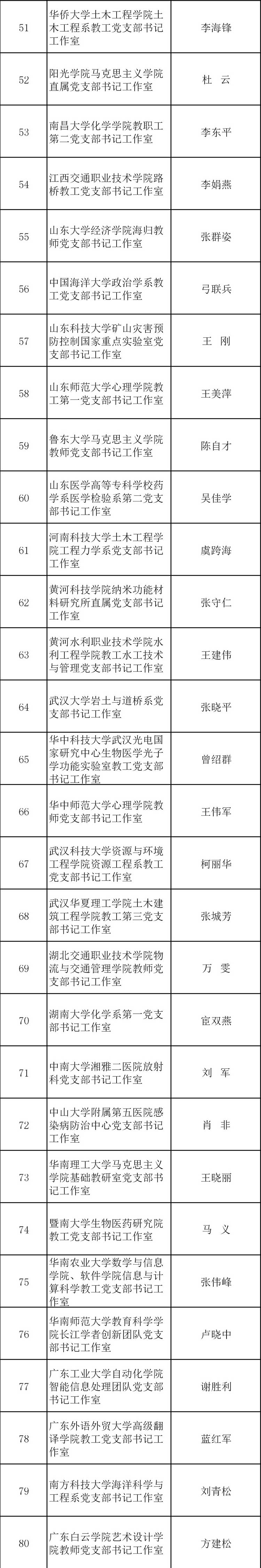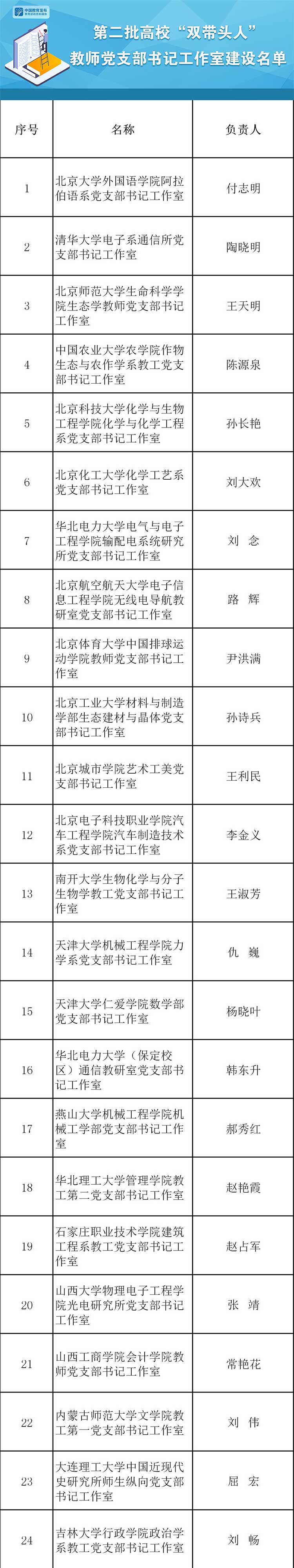 日前,教育部公布第二批高?!半p帶頭人”教師黨支部書(shū)記工作室建設(shè)名單。名單如下: