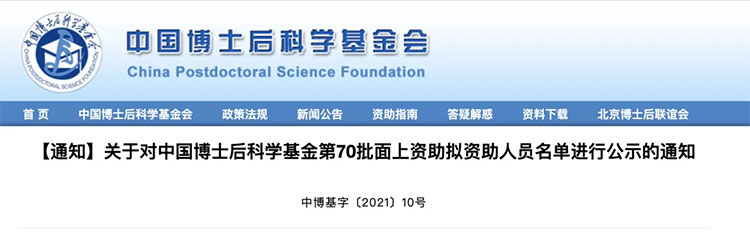 11月8日,中國博士后科學(xué)基金會公示了第70批面上項目擬資助名單,公示期為11月8日至11月14日。