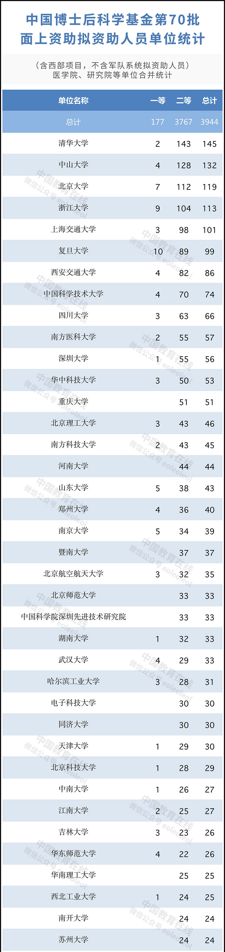 據(jù)統(tǒng)計,本輪公示共有3944位博士后擬獲資助(其中面上資助擬資助人員3794人,西部資助項目150項,軍隊系統(tǒng)除外)。依托單位主要來自高校、科研院所和企業(yè)等單位。