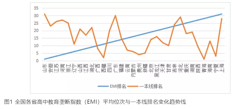 研究分析發(fā)現(xiàn):超級中學教育壟斷指數(shù)越高,省內普通理科一本分數(shù)線越有可能會隨之下降。