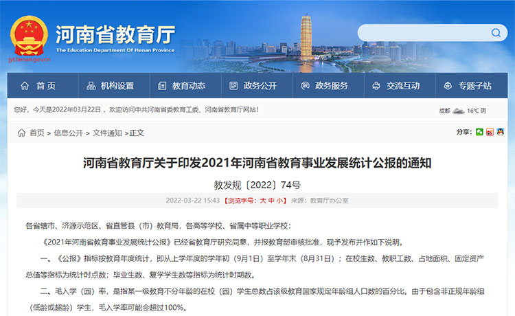 2021年河南省教育事業(yè)發(fā)展統(tǒng)計(jì)公報(bào)