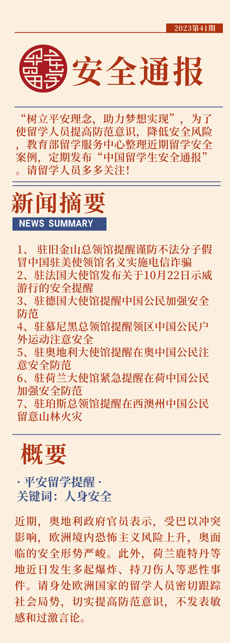 2023第41期中國(guó)留學(xué)生安全通報(bào)