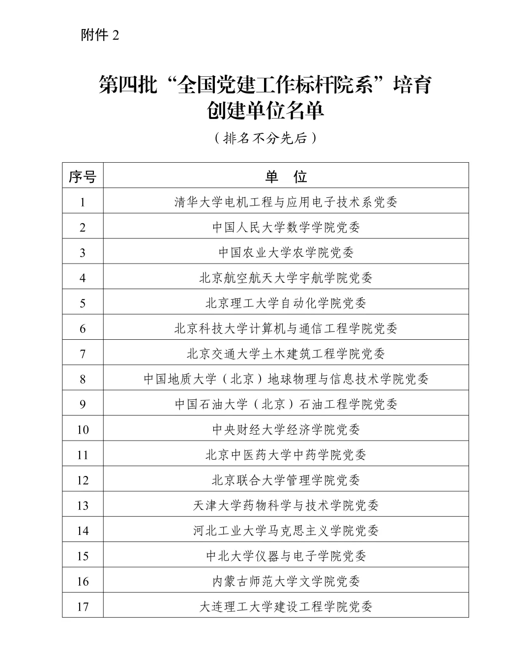 第四批“全國黨建工作標桿院系”培育創(chuàng)建單位名單