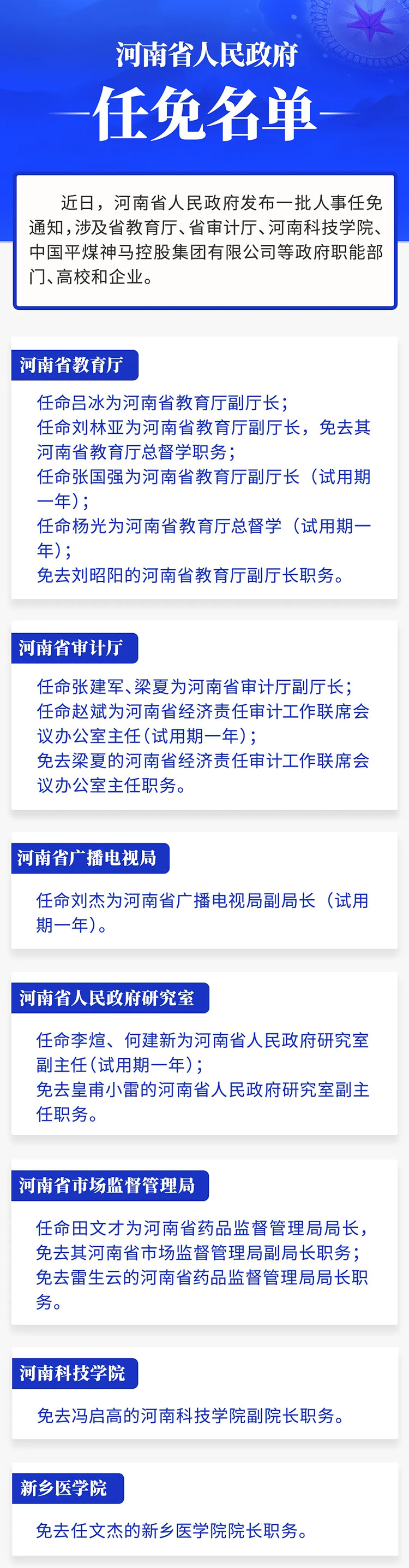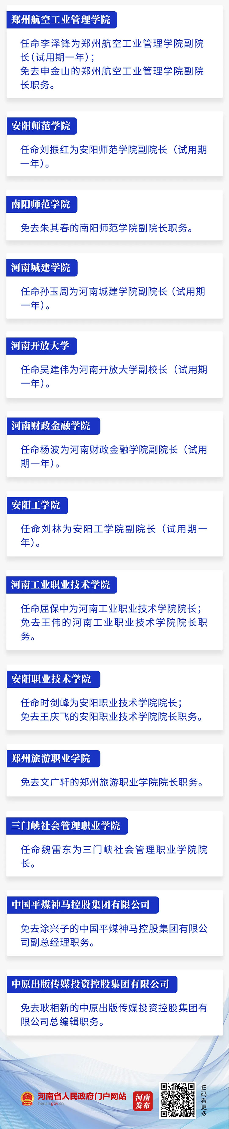 涉及省教育廳及多所高校!河南省政府新任免一批干部