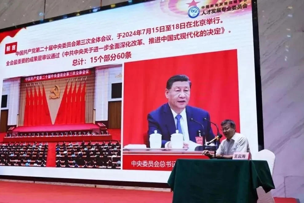 本次研修班首先由王云海副主任帶領(lǐng)全體學(xué)員學(xué)習(xí)黨的二十屆三中全會(huì)精神。王云海副主任指出,《中共中央關(guān)于進(jìn)一步全面深化改革、推進(jìn)中國式現(xiàn)代化的決定》提出了教育、科技、人才是中國式現(xiàn)代化的基礎(chǔ)性、戰(zhàn)略性支撐,必須深入實(shí)施科教興國戰(zhàn)略、人才強(qiáng)國戰(zhàn)略、創(chuàng)新驅(qū)動(dòng)發(fā)展戰(zhàn)略,統(tǒng)籌推進(jìn)教育科技人才體制機(jī)制一體改革等重要論斷,這些論斷為新時(shí)期高校人才高質(zhì)量發(fā)展指明了方向。王云海副主任表示,人才發(fā)展專委會(huì)組織本次研修班,是落實(shí)二十屆三中全會(huì)精神的具體舉措,旨在通過學(xué)習(xí)黨和國家的最新政策,分享代表性高校的創(chuàng)新舉措,凝聚各高校人事人才工作的共識(shí),促進(jìn)院校間的互學(xué)互鑒,共同推進(jìn)教師隊(duì)伍的高質(zhì)量發(fā)展。
