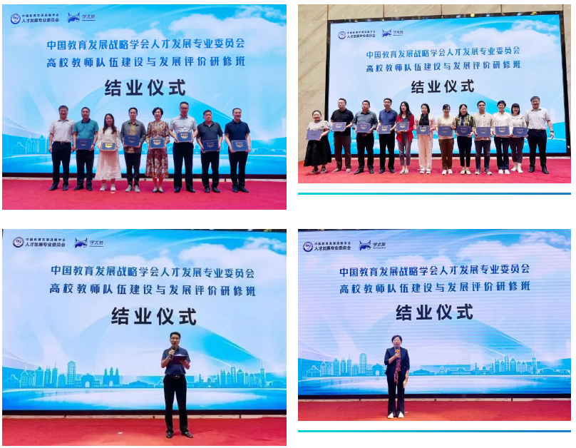 人才發(fā)展專委會(huì)學(xué)術(shù)委員會(huì)秘書秦冠英主持研修班結(jié)業(yè)儀式,王云海副主任對(duì)本次研修班進(jìn)行簡要總結(jié);南寧師范大學(xué)人事處趙慧琴處長與長安大學(xué)人才辦高煒副主任分別分享了參與本次研修班的收獲;王云海副主任為各學(xué)校與會(huì)代表頒發(fā)結(jié)業(yè)證書。在愉快的氛圍中,人才發(fā)展專委會(huì)第一期高校教師隊(duì)伍建設(shè)與發(fā)展評(píng)價(jià)研修班落下帷幕。