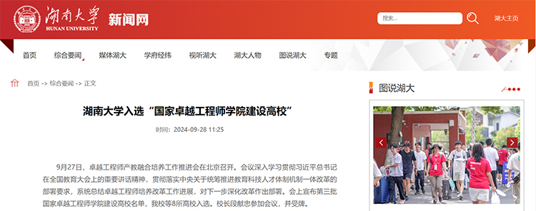 2023年,湖南大學(xué)卓越工程師學(xué)院成立。學(xué)院緊扣國(guó)家戰(zhàn)略需求和行業(yè)產(chǎn)業(yè)一線需要,聚焦智慧能源、人工智能、新一代信息通信技術(shù)、智能建造、先進(jìn)制造與高端裝備、新材料、生物醫(yī)藥等優(yōu)勢(shì)學(xué)科與特色方向,攜手國(guó)機(jī)集團(tuán)、懷柔國(guó)家實(shí)驗(yàn)室、中國(guó)船舶、兵器工業(yè)集團(tuán)、中國(guó)電科、南方電網(wǎng)等頭部企業(yè)及科研單位,穩(wěn)步推進(jìn)工程碩博士培養(yǎng)改革試點(diǎn)任務(wù)。