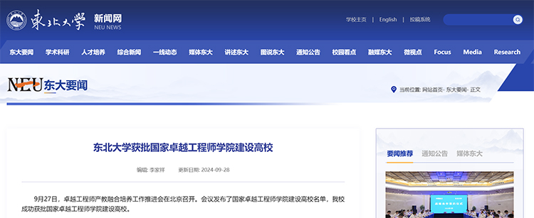 28日,東北大學(xué)官網(wǎng)發(fā)布消息稱,9月27日,卓越工程師產(chǎn)教融合培養(yǎng)工作推進(jìn)會(huì)在北京召開(kāi)。會(huì)議發(fā)布了國(guó)家卓越工程師學(xué)院建設(shè)高校名單,東北大學(xué)成功獲批國(guó)家卓越工程師學(xué)院建設(shè)高校。