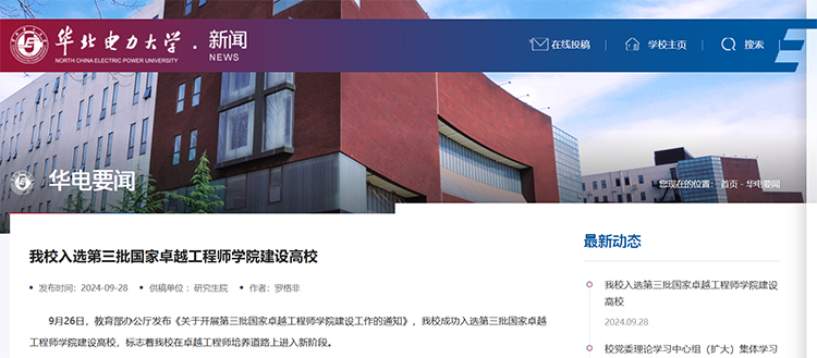 28日,華北電力大學(xué)官網(wǎng)發(fā)布消息稱,9月26日,教育部辦公廳發(fā)布《關(guān)于開(kāi)展第三批國(guó)家卓越工程師學(xué)院建設(shè)工作的通知》,學(xué)校成功入選第三批國(guó)家卓越工程師學(xué)院建設(shè)高校,標(biāo)志著學(xué)校在卓越工程師培養(yǎng)道路上進(jìn)入新階段。