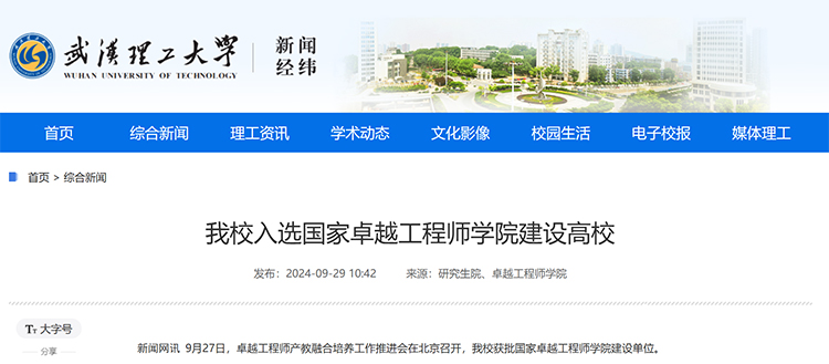 29日,武漢理工大學(xué)官網(wǎng)發(fā)布消息稱,9月27日,卓越工程師產(chǎn)教融合培養(yǎng)工作推進(jìn)會(huì)在北京召開(kāi),武漢理工大學(xué)獲批國(guó)家卓越工程師學(xué)院建設(shè)單位。