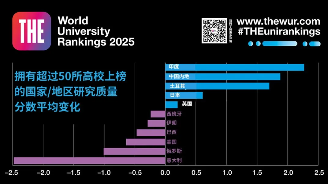 此次2025年世界大學(xué)排名中,中國(guó)內(nèi)地共有94所大學(xué)上榜,比去年的86所有所增加。與去年相比,有 26 所院校的排名有所上升,使中國(guó)內(nèi)地整體的排名上升了21%。