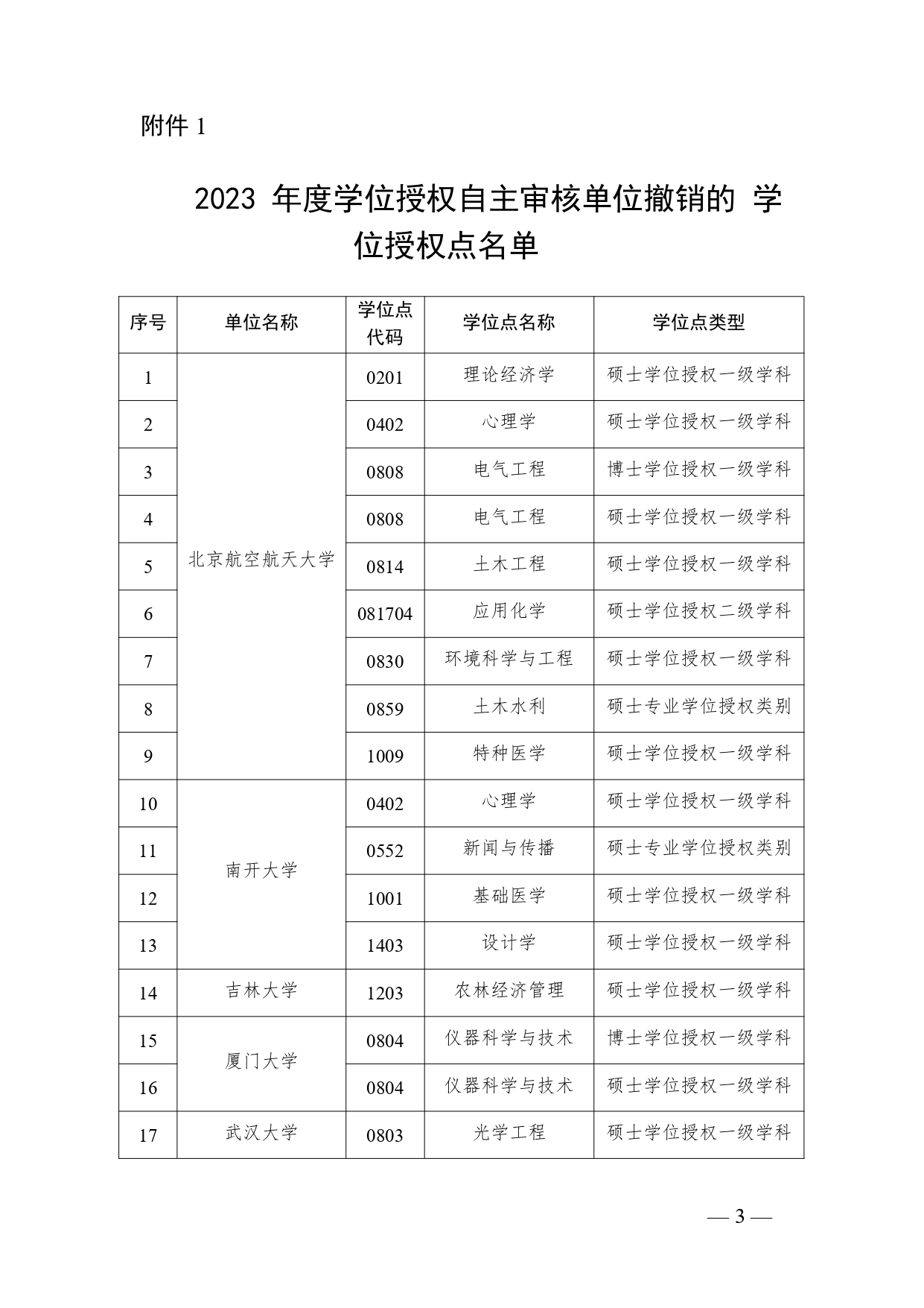 2023年度學(xué)位授權(quán)自主審核單位撤銷和增列的學(xué)位授權(quán)點(diǎn)名單