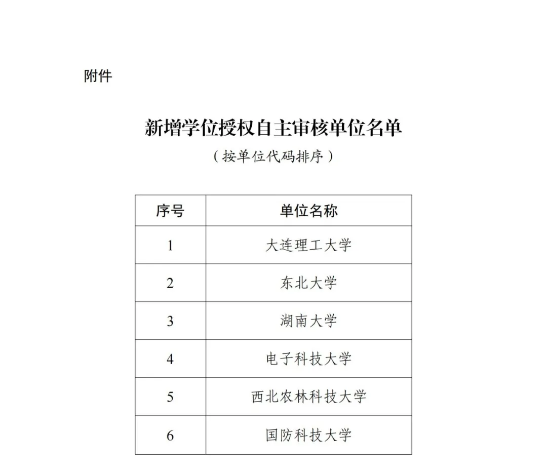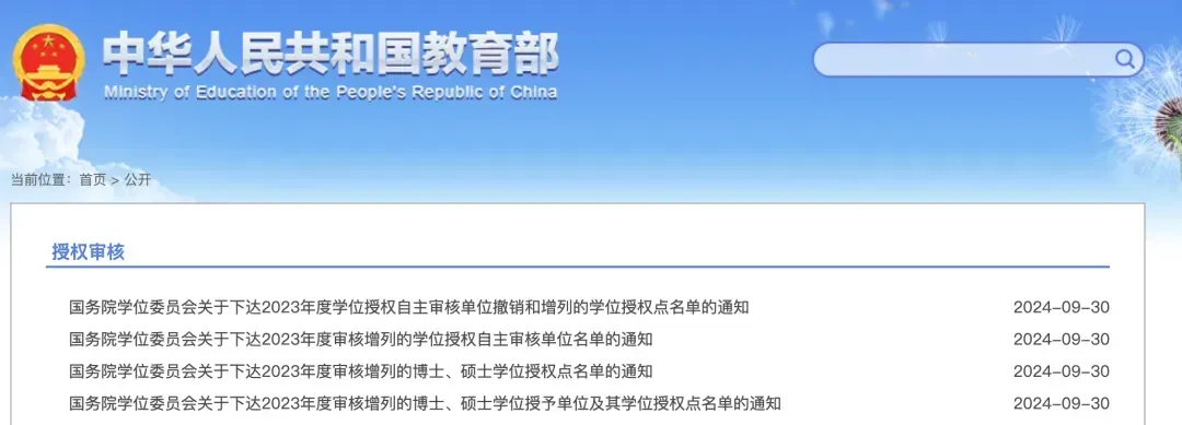 近日,教育部官網(wǎng)公開國務(wù)院學(xué)位委員會關(guān)于下達(dá)2023年度學(xué)位授權(quán)自主審核單位撤銷和增列的學(xué)位授權(quán)點(diǎn)名單和2023年度審核增列的學(xué)位授權(quán)自主審核單位名單的通知。