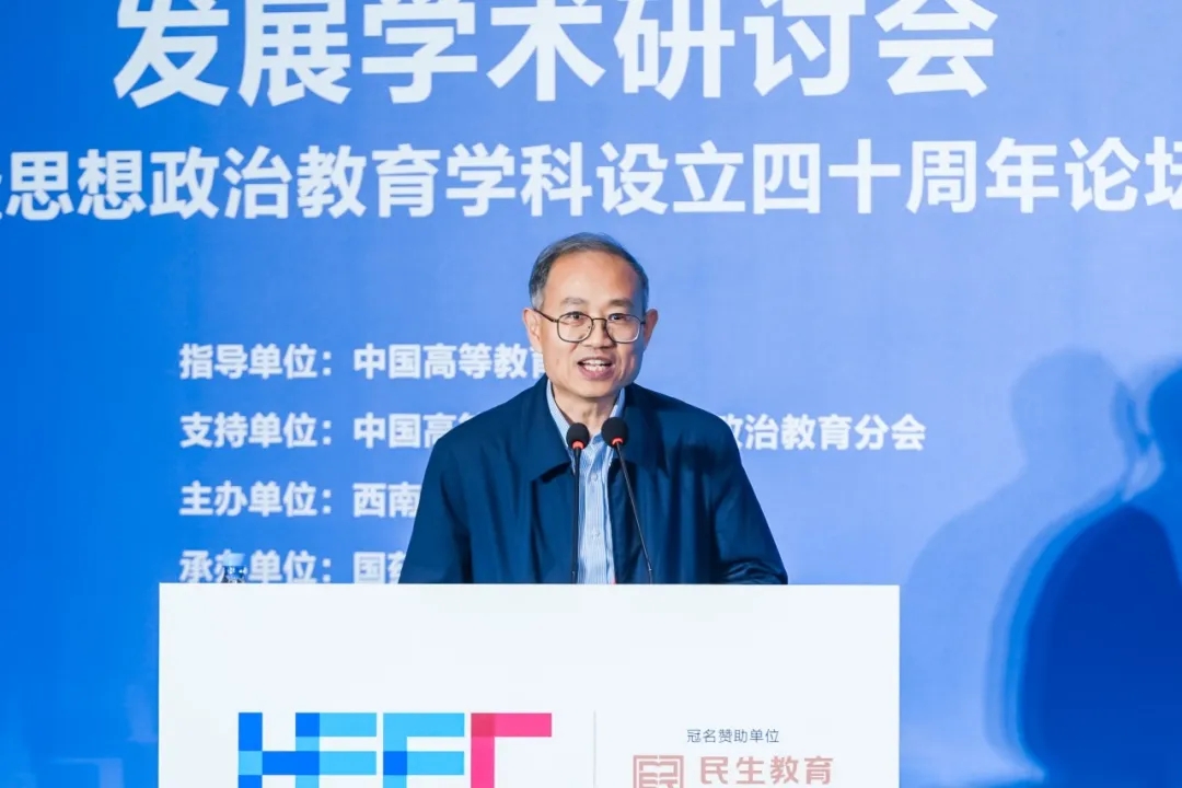 重慶師范大學(xué)原黨委書記鄧卓明教授以《改革開放以來黨的創(chuàng)新理論引領(lǐng)思想政治教育學(xué)科發(fā)展的三重維度》為題,分享了改革開放以來黨的創(chuàng)新理論引領(lǐng)思想政治教育學(xué)科發(fā)展的三重維度:一是黨的創(chuàng)新理論為思想政治教育學(xué)科發(fā)展定位,即黨的創(chuàng)新理論為思想政治教育學(xué)科發(fā)展提供戰(zhàn)略定位、理論定位和使命定位;二是黨的創(chuàng)新理論推動(dòng)思想政治教育學(xué)科持續(xù)發(fā)展,即黨的創(chuàng)新理論為思想政治教育學(xué)科持續(xù)發(fā)展提供理論支撐、內(nèi)容資源與方法指導(dǎo);三是黨的創(chuàng)新理論引領(lǐng)思想政治教育學(xué)科高質(zhì)量發(fā)展,圍繞思想政治工作生命線、人才培養(yǎng)質(zhì)量、社會(huì)主義文化建設(shè)引領(lǐng)思想政治學(xué)科的高質(zhì)量發(fā)展。