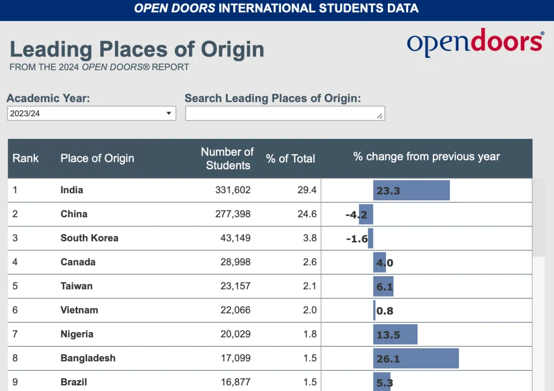 北京時(shí)間2024年11月18日晚,美國(guó)國(guó)際教育研究所(Institute of International Education, IIE)發(fā)布了《2024年度美國(guó)國(guó)際教育門(mén)戶(hù)報(bào)告》,也就是:Open Doors 2024 Report。