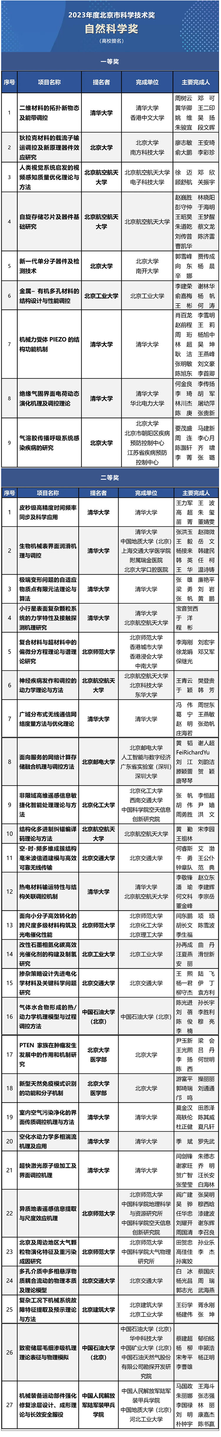 近日,2023年度北京市科學(xué)技術(shù)獎(jiǎng)?wù)焦迹?9位科學(xué)家、196項(xiàng)成果獲獎(jiǎng)。其中,北京部分高校提名的多個(gè)項(xiàng)目成果榮獲獎(jiǎng)項(xiàng),一起來(lái)看: