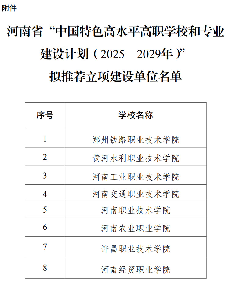 在第二輪獲推薦立項(xiàng)建設(shè)的8所高職院校中,河南交通職業(yè)技術(shù)學(xué)院與河南經(jīng)貿(mào)職業(yè)學(xué)院為新入選的“雙高計(jì)劃”推薦建設(shè)單位。