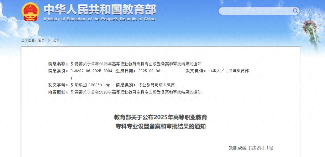 近日,教育部發(fā)布《關(guān)于公布2025年高等職業(yè)教育專科專業(yè)設(shè)置備案和審批結(jié)果的通知》,教育部已組織完成了2025年高等職業(yè)教育??茖I(yè)設(shè)置備案和審批相關(guān)工作。經(jīng)省級教育行政部門備案并在教育部匯總的2025年擬招生專業(yè)點(diǎn)共67898個(gè),備案結(jié)果可在全國職業(yè)院校專業(yè)設(shè)置管理與公共信息服務(wù)平臺查詢。