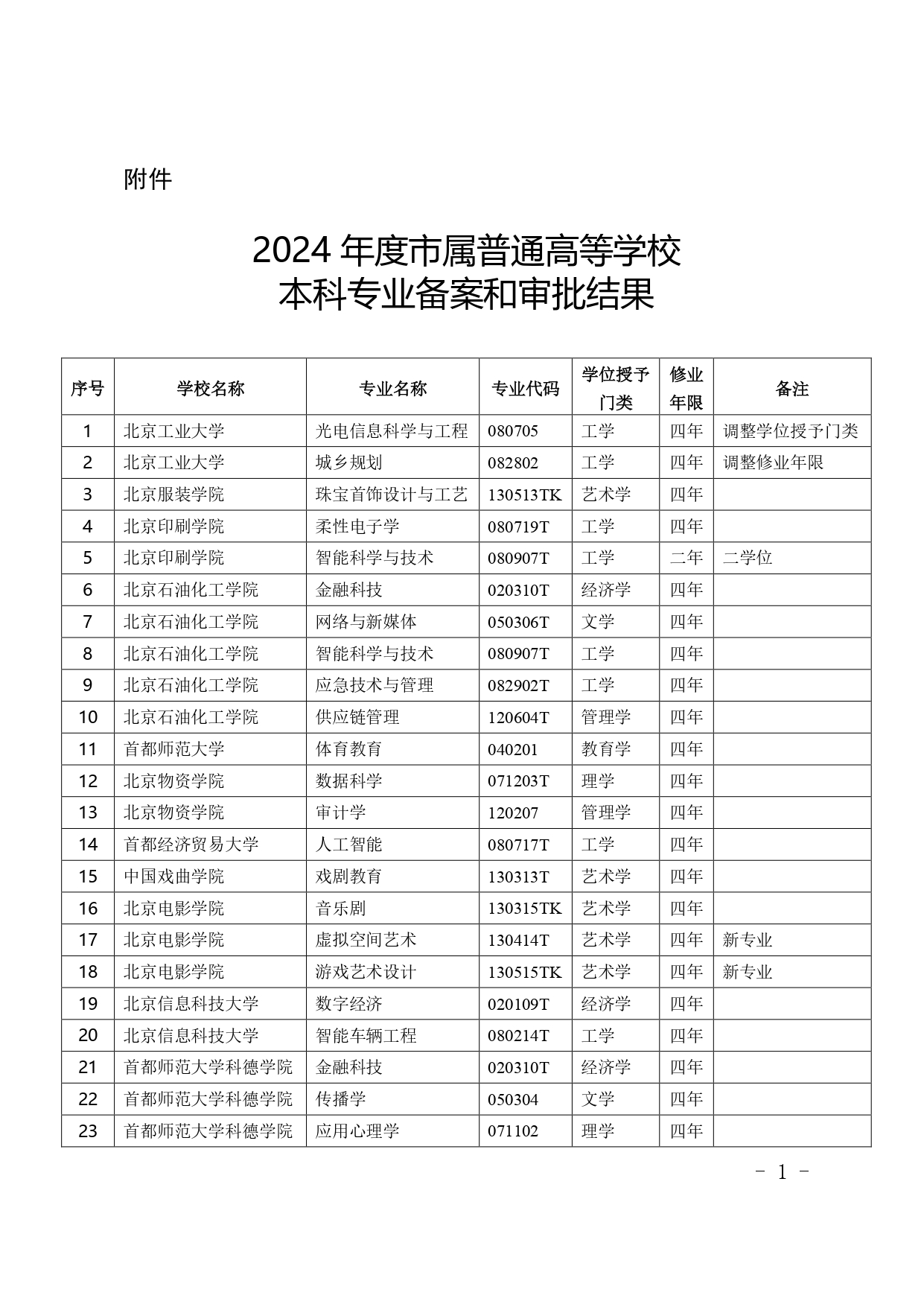 北京市教育委員會(huì)關(guān)于公布2024年度市屬普通高等學(xué)校本科專業(yè)備案和審批結(jié)果的通知