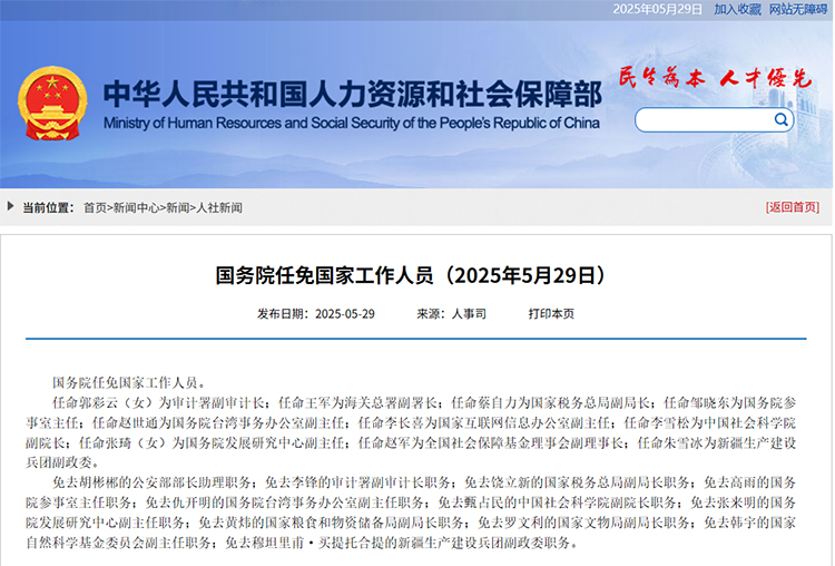 人社部網(wǎng)站5月29日消息,國務(wù)院任免國家工作人員。其中:李雪松任中國社會科學(xué)院副院長。